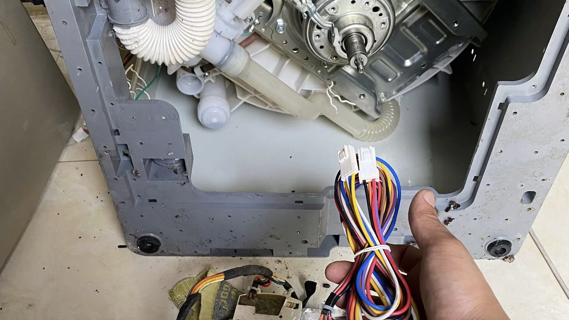 Máy giặt không xả được nước: Có thể do van xả bị hỏng, ống xả bị tắc,…